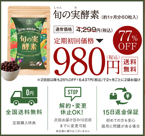 お試しとして旬の実酵素を利用してみたい場合は、公式販売サイトの定期コースをチェックしてみてください。